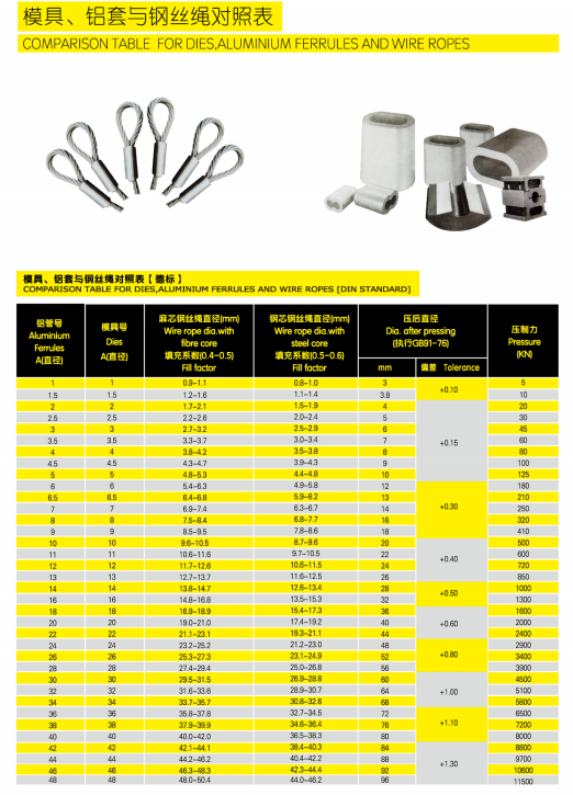 主頁 > 產品展示 > 八字形鋁套 橢圓形鋁套 > 模具、鋁套與鋼絲繩對照表